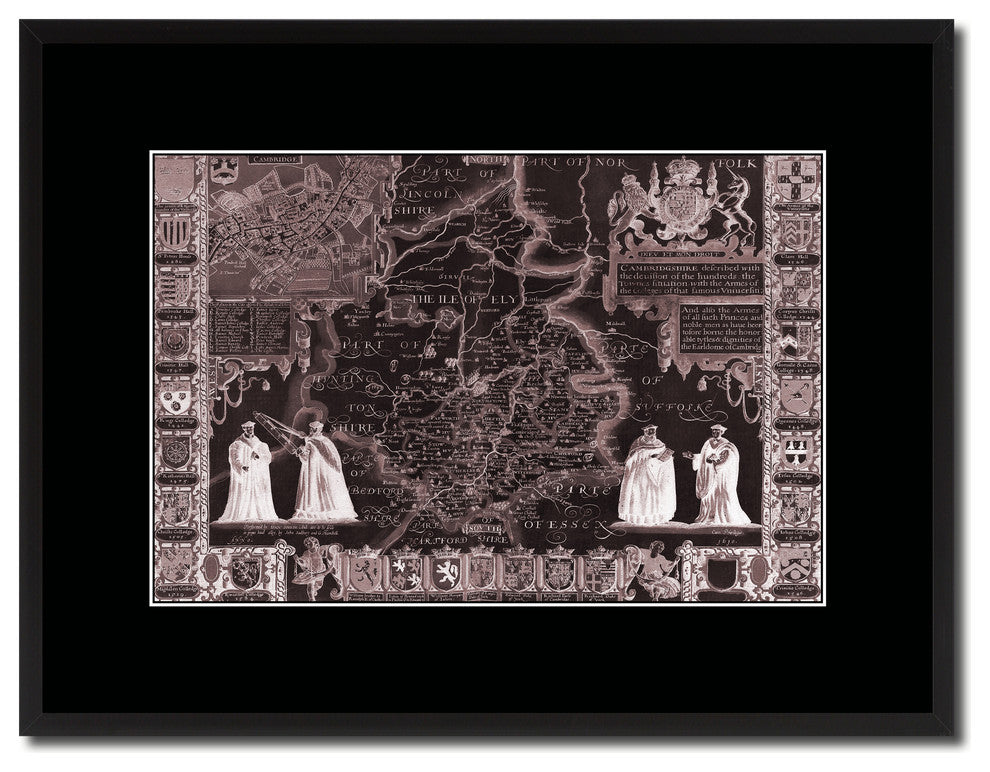 Cambridgeshire Vintage Vivid Sepia Map Canvas, 16"x21"