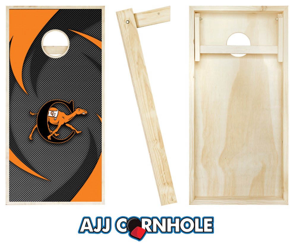 Officially Licensed Campbell Cornhole Set. Show off your Camels pride at your next cookout or tailgate with our signature Swoosh design. Cornhole Set comes ready to play right out of the box, no assembly required! Set comes complete with 2 wooden game boards and 8 officially licensed Campbell bags! Officially Licensed Collegiate ProductRegulation Size (2 Feet x 4 Feet)Tournament Grade ConstructionFolding Legs For Easy StorageAll Wood Construction Set Includes 8 Bags. All sets are made using a premium 2x4 frame and 1/2" sanded plywood playing surface. Each set has folding 2x4 legs secured with galvanized bolts.