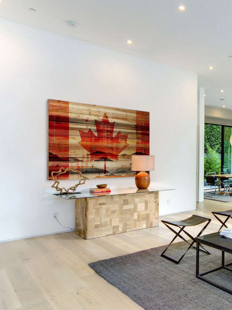 "Canadian Leaf" Print on Natural Pine Wood, 60"x40"