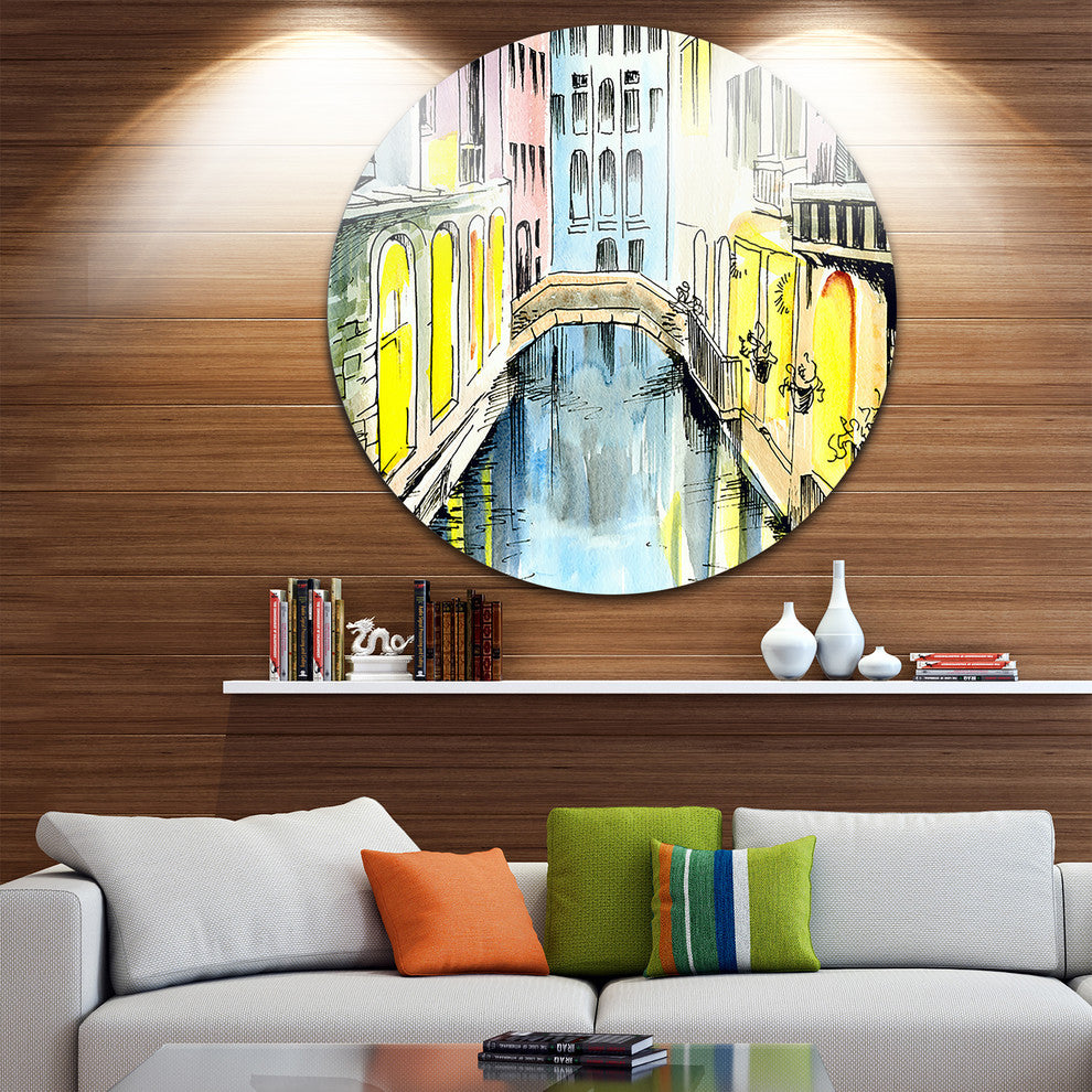 Canal In Venice, Cityscape Disc Metal Wall Art, 11"