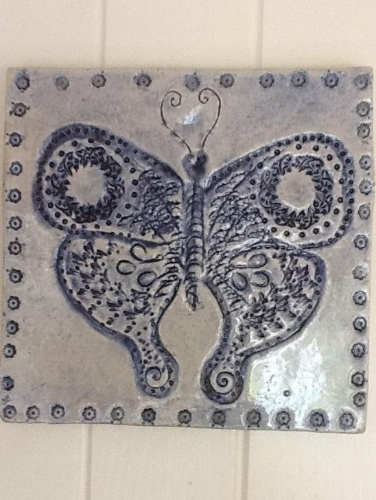 Beautiful, one of a kind Large Butterfly Tile.9.25" x 9.5" x 0.5"Non-toxic, Food, Dishwasher and microwave safeNotch on back for hanging or can be installed as decorative plumbing tileLepidoptera series