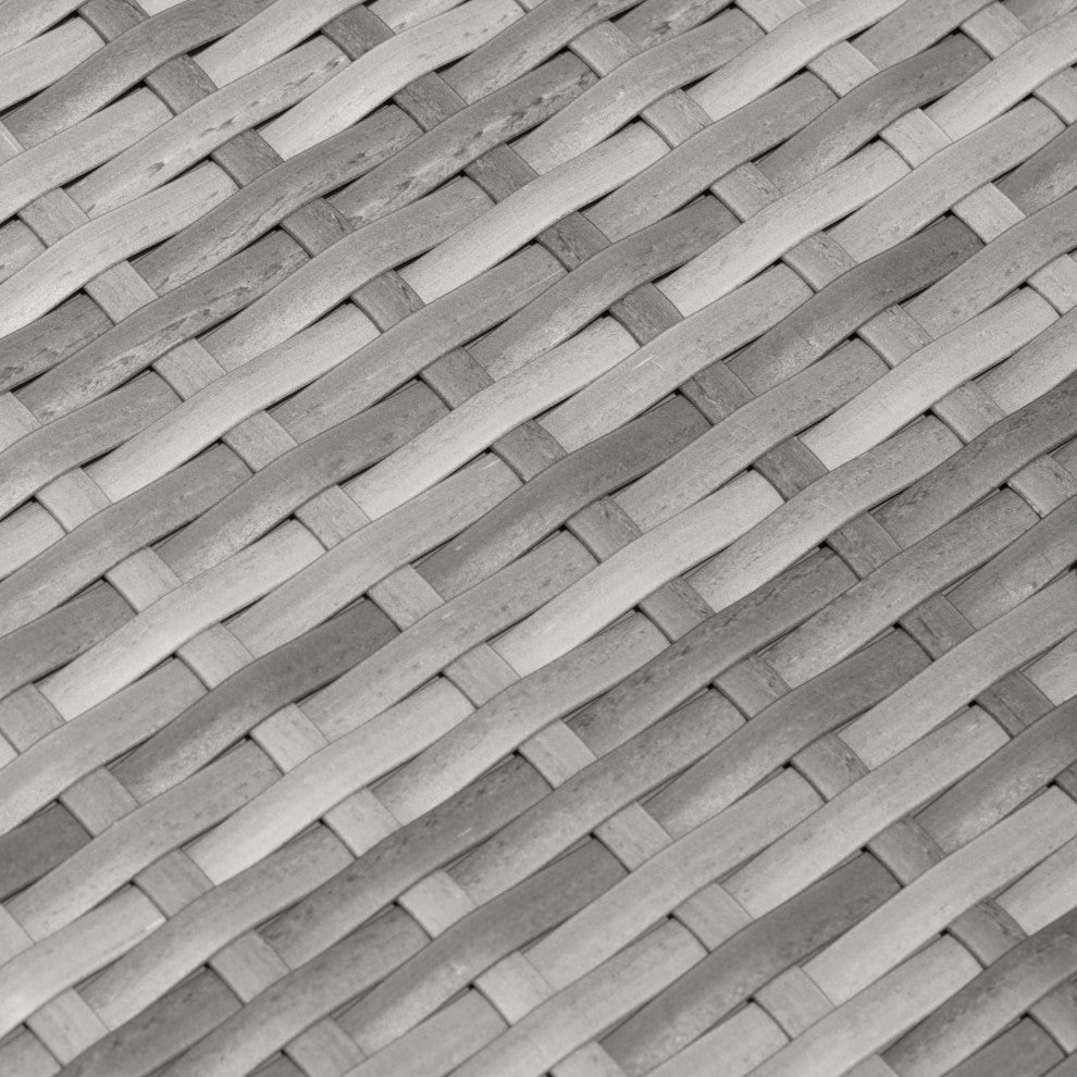 - Hand-woven, gray SolarFast® resin wicker in a two-tone color weave is UV, weather, and water-resistant.