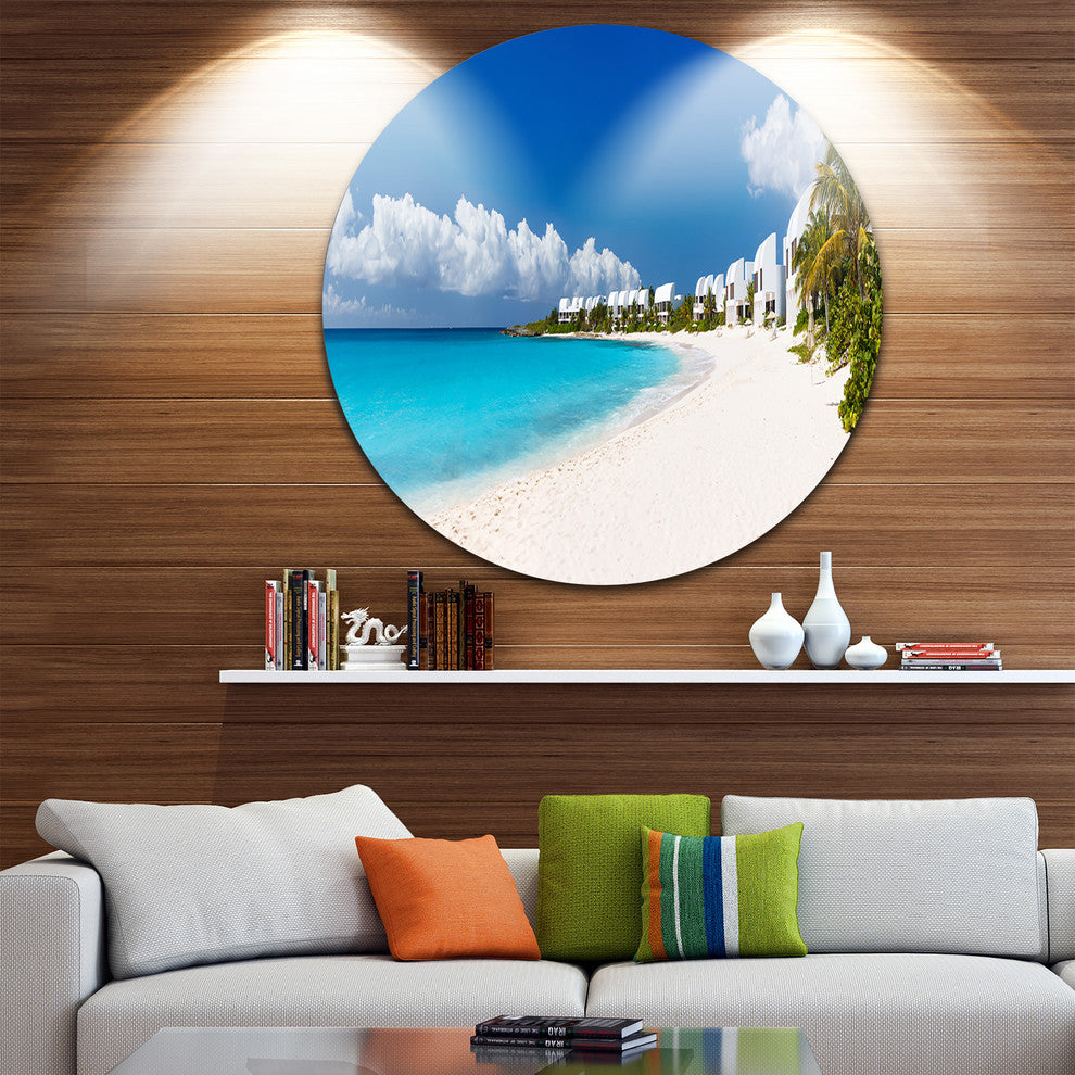 Caribbean Beach Panorama, Landscape Photo Round Wall Art, 23"
