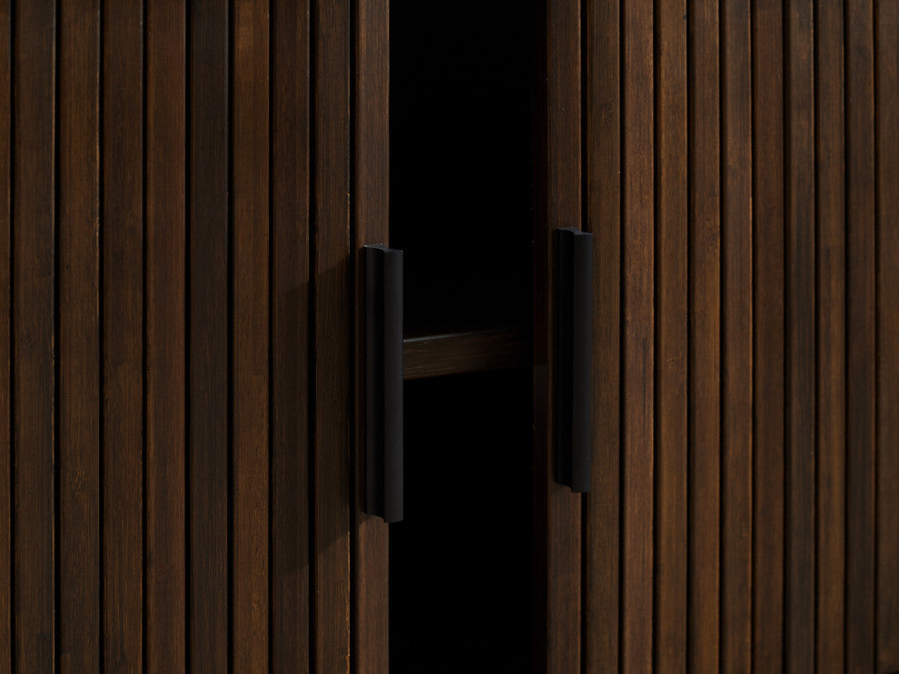 Crafted from solid bamboo and hand finished in a rich Black Walnut stain, the Carmel console showcases the natural beauty of bamboo with unique grain and color variations. These subtle differences not only highlight the authenticity of the material but also mark each piece as one-of-a-kind, a testament to its exceptional quality.