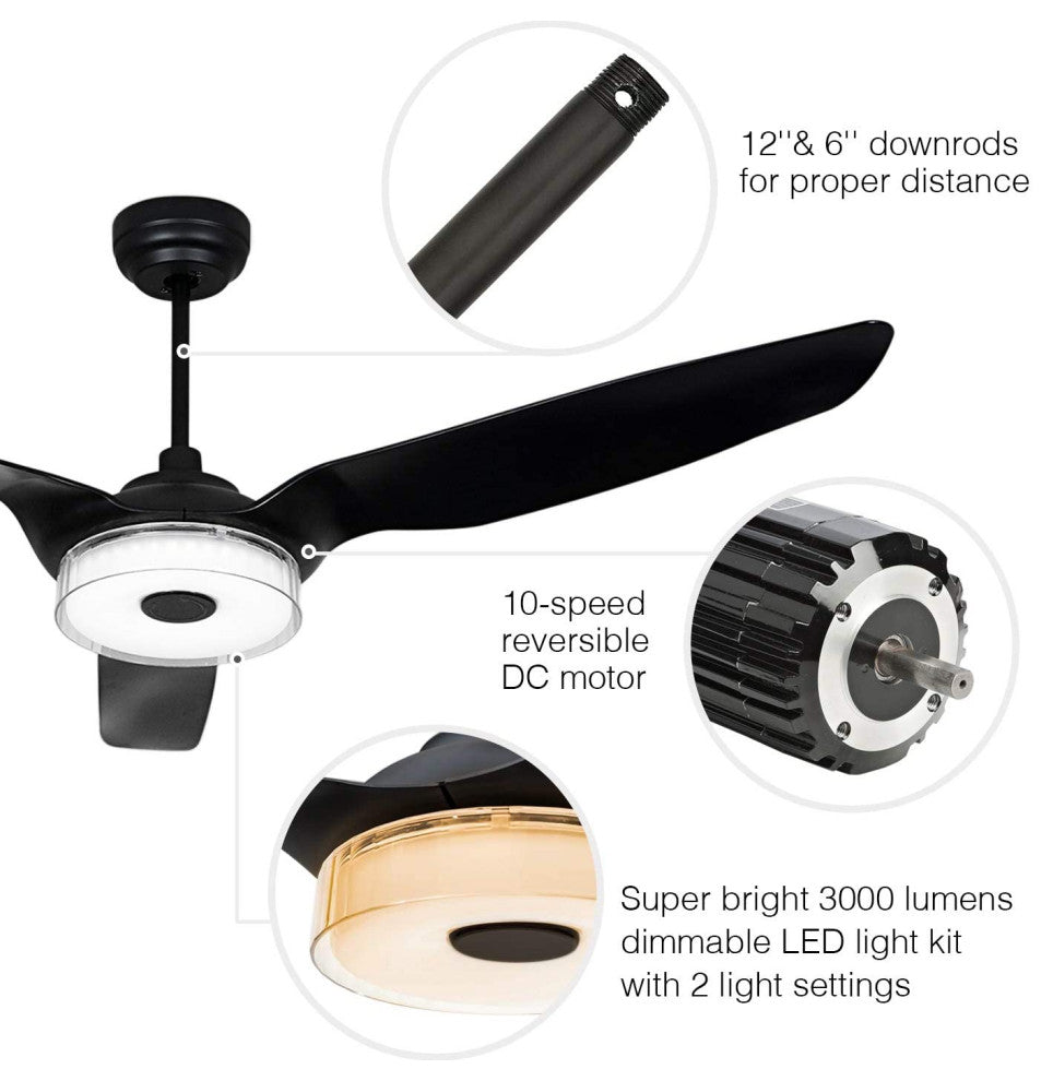 Carro Smart Voice Control Ceiling Fan with Dim LED Light and Remote 10-speed, Black, 60 in