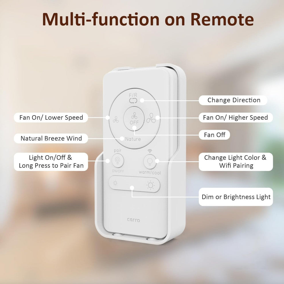 Control your fan with Alexa, Google Home, Siri, and Carro Home Smart app.