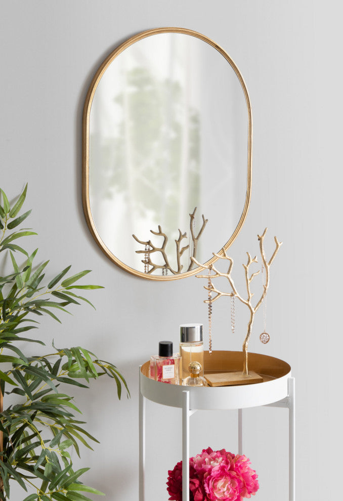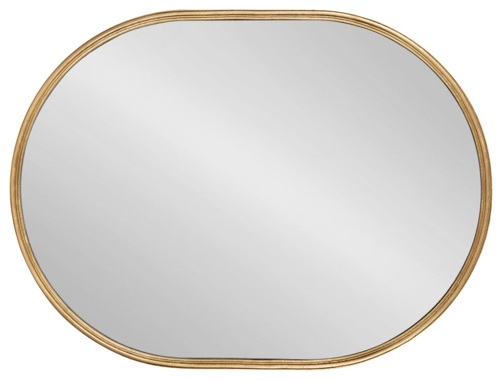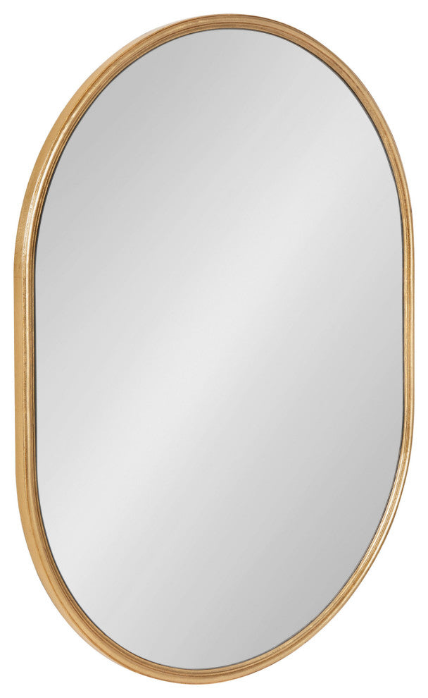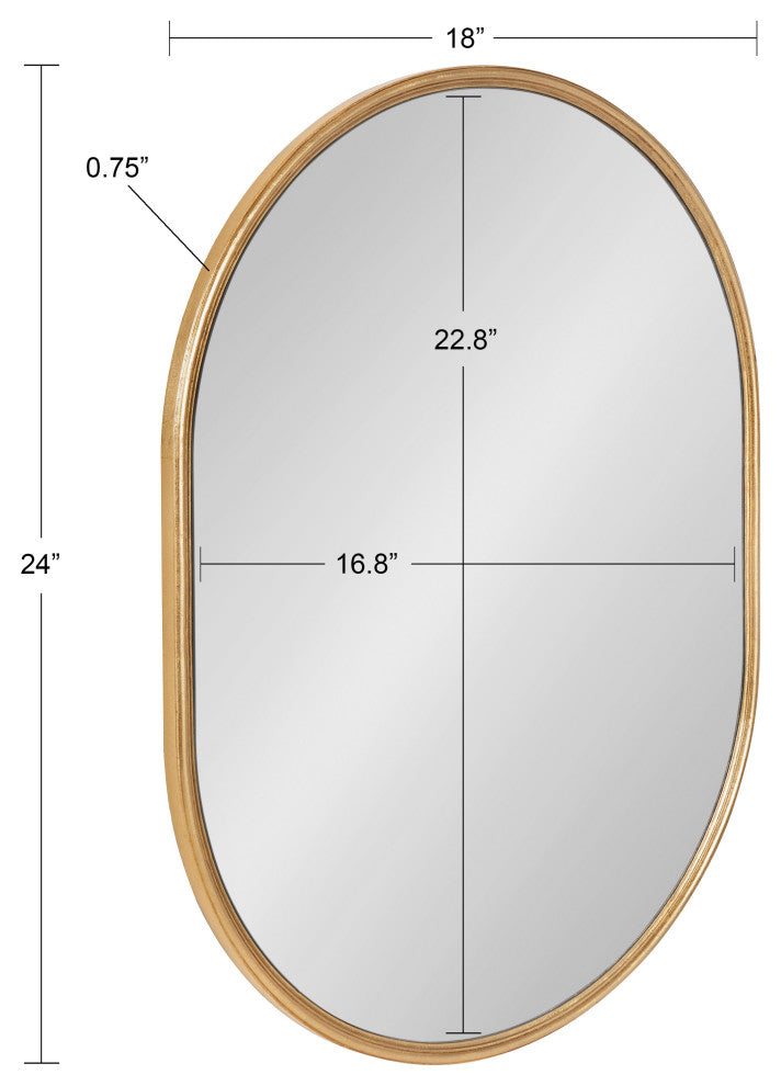 Mid-century design meets modern simplicity in this beautiful capsule-like mirror from Kate and Laurel. It takes design cues from mid-century decor, featuring a stunning gold leaf finish done by hand. This kind of premium finish means that each Caskill Oval Wall Mirror is one of a kind, delivering a true masterpiece of elegant craftsmanship. Just take a look at the wall mirror''s capsule shape: it presents a refinement of clean, curved edges that uphold elegant simplicity above all else. Adding a mirror to your home opens up your smaller spaces by reflecting and spreading light, providing more dimension and openness. Use it as a decadent, decorative accent in your living room, bedroom, or entryway, or mount it in your master bathroom as a vanity mirror. The metal D-ring hangers make the Caskill Oval Mirror easy to hang in both portrait and landscape orientations. This particular version of the Caskill Mirror is 24 inches tall by 18 inches wide, providing an excellent focal point that doesn''t overshadow any of your other decor pieces.
