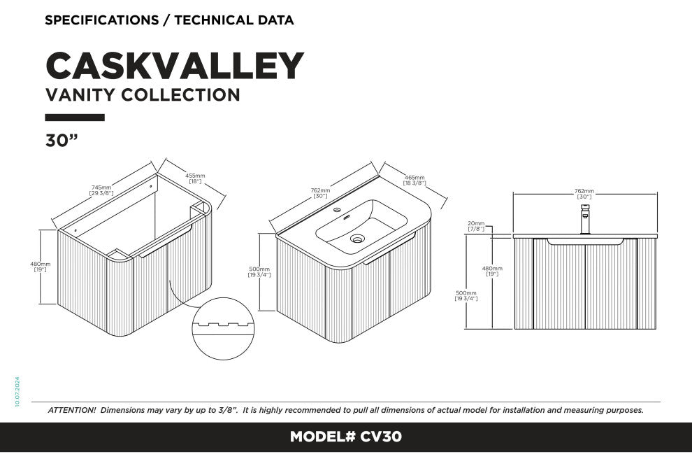 The CASKVALLEY vanity collection features a sleek, contemporary design with a textured exterior that adds a modern touch to any bathroom space. It provides practical storage solutions with its spacious cabinet, ideal for keeping essentials organized and out of sight. The durable surface is designed to withstand daily use, while the soft-close door mechanism ensures quiet and smooth operation. This collection combines functionality with refined style, making it a versatile option for various interior designs.