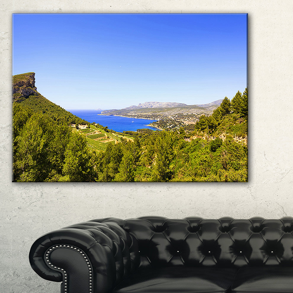 The Cassis Bay from Route des Cretes canvas art print is sure to make an impression on anyone who sees it. This artwork is gallery wrapped around a 1-inch solid wood frame and arrives carefully packaged and entirely ready to hang on the wall. Design Art only uses the highest resolution and pigments to ensure a crisp colorful print that is never faded or pixelated. This artwork is sure to be a conversation starter in any home or office.