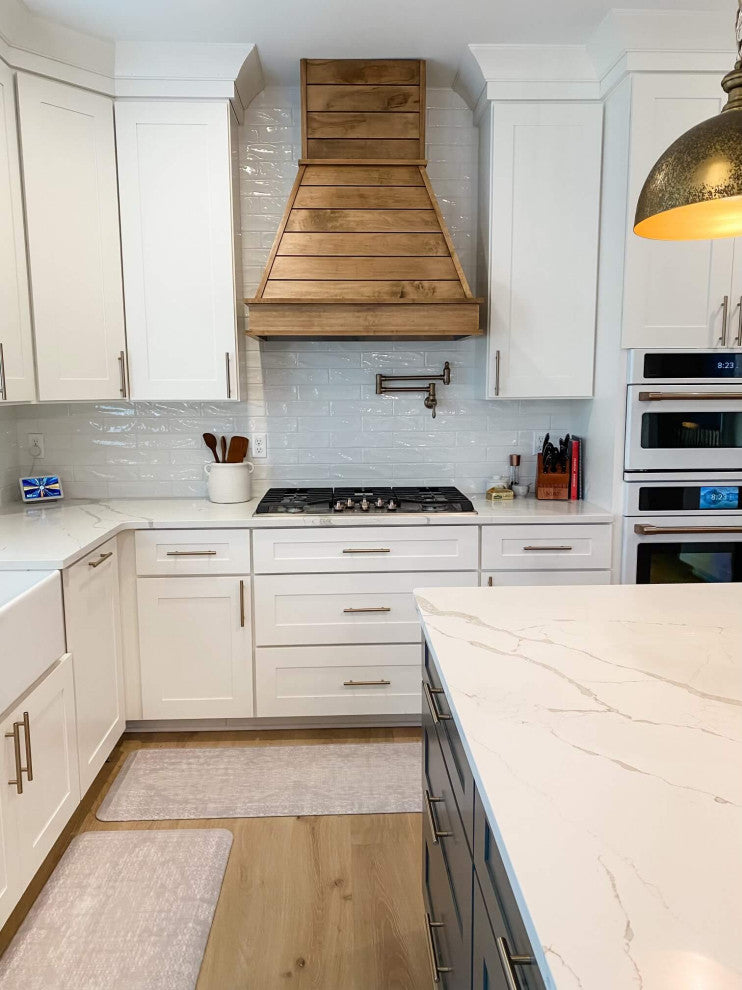 One of the latest kitchen design trends is the use of reclaimed lumber. This material is commonly referred to as Shiplap. Castlewood''s SY-WCSL Shiplap Smooth Chimney Range Hood employs the shiplap look and construction and is sanded smooth and ready for finishing.This design is popular on many of the hit DIY TV shows out now, at a fraction of the price. Handcrafted in the southern United States, each Shiplap hood is a truly unique piece that will serve as the centerpiece of your kitchen. Join in on the shiplap trend and make your farmhouse feel homier.Available Species:Alder, Cherry, Maple, Hickory, Red OakAvailable Sizes:SY-WCSL-30: H 42-1/2 | W 31" | D 20-3/8"SY-WCSL-36: H 42-1/2 | W 37" | D 20-3/8"SY-WCSL-42: H 42-1/2 | W 43" | D 20-3/8"SY-WCSL-48: H 42-1/2 | W 49" | D 20-3/8"Additional Info:These wood range hood covers are designed to accept the Ascension brand liners and ventilators. They are available as a separate listing. Please contact us if you are having difficulty locating the ventilator kit listings. If you have a third party ventilator, please contact us to make sure the unit will fit. Most third party ventilators will require customization to the hood.If you are struggling to decide which ventilator is the right fit for you, consider the range or cooktop this hood will cover. 250, 350, and 390 CFM ventilators are generally designed for electric cooktops, while 500 CFM and higher are designed for gas cooktops.Note: This hood does not fit the Ascension 900 and 1200 CFM ventilators. In order to fit the 900 and 1200 CFM ventilators you will need the XL version of this shiplap hood.Standard chimney hoods are designed to fit a 9'' ceiling application. The chimney extension is trimmable and can be cut down to fit shorter ceiling heights. If you need additional extension please contact us. Additional extensions are available for an added cost.Range hoods are large shipments and thus are shipped LTL freight. If this is being shipped to a residence, the carrier will contact you to schedule a delivery appointment.This is just the range hood cover. Liners and ventilators are available as a separate listing.
