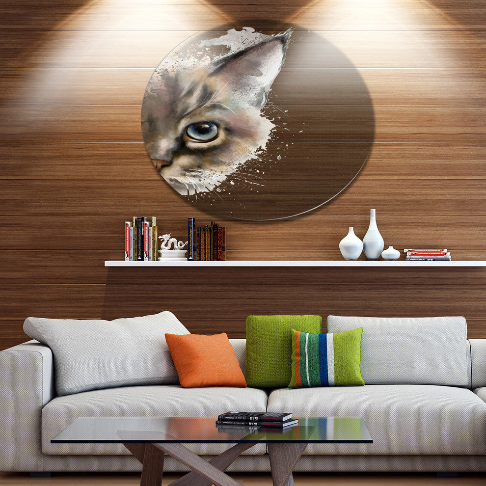 Bring Contemporary Abstraction to your home with this large Circle Metal wall art. This Cat Half Face Watercolor Metal Artwork makes it the focal point of any room or office.