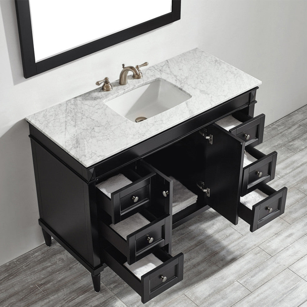 Catania 48" Vanity in Espresso with Carrara White Marble Countertop With Mirror