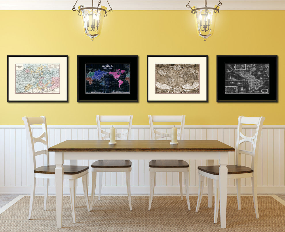 Central Germany Vintage Map Print On Canvas With Picture Frame 28" X 37"