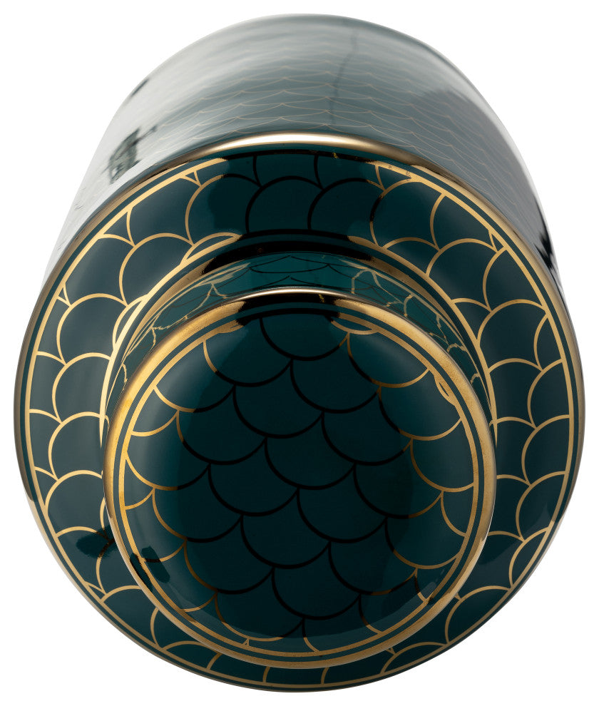 Ceramic 16" Crackle Jar, Lid, Gold