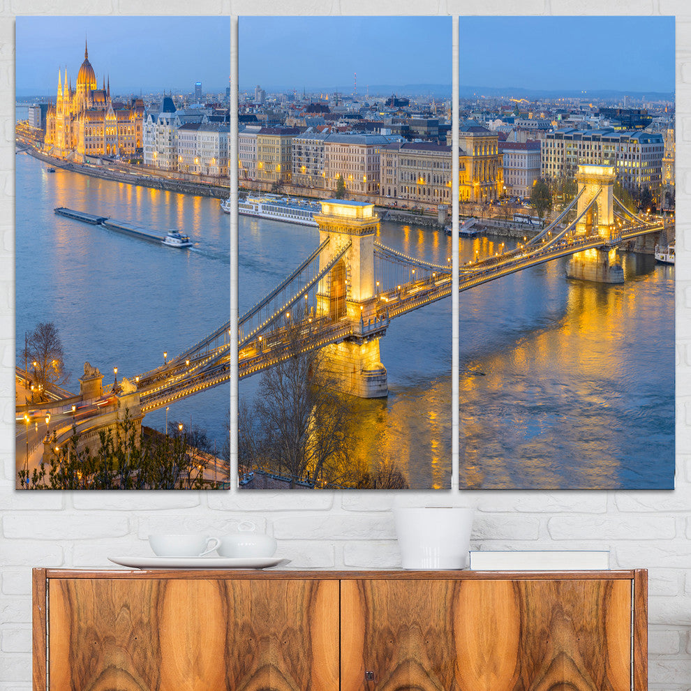 "Chain Building and Parliament in Budapest" Wall Art, 3 Panels, 36"x28"