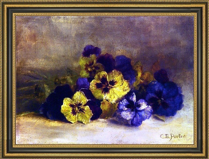 18" x 27" Charles Ethan Porter Pansies framed premium canvas print reproduced to meet museum quality standards. Our Museum quality canvas prints are produced using high-precision print technology for a more accurate reproduction printed on high quality canvas with fade-resistant, archival inks. Our progressive business model allows us to offer works of art to you at the best wholesale pricing, significantly less than art gallery prices, affordable to all. This artwork is hand stretched onto wooden stretcher bars, then mounted into our 3 3/4" wide gold finish frame with black panel by one of our expert framers. Our framed canvas print comes with hardware, ready to hang on your wall. We present a comprehensive collection of exceptional canvas art reproductions by Charles Ethan Porter .