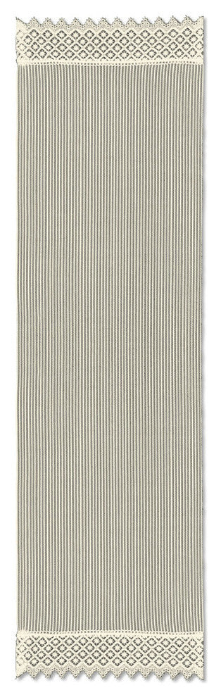 The crisp, clean look of pinstripes, made even more inviting with lace trim.This classic is warmed and softened by simple-yet-intricate macram_ trim. Machine wash. Made in U.S.A. 100% polyester. Machine wash cold, gentle. Do not bleach. Lay flat or hang to dry. Touch up with cool iron if desired. 3.75" Trim included in stated dimension Medium-gauge lace