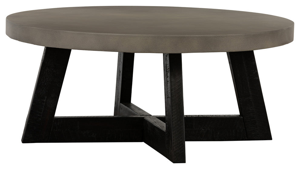 Chester Modern Concrete and Acacia Round Coffee Table