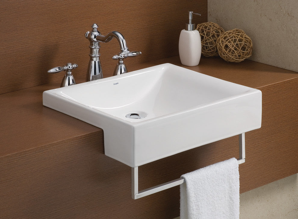 The PACIFIC Semi-Cassa Sink brings the design style of its popular vessel sibling to a semi-enclosed application. Here, the basin sits lower on the counter and extends past the edge of the counter. This creates more space for a faucet behind the sink and adds the option of a metal towel bar. A perfect option for situations where counter depth is limited.
