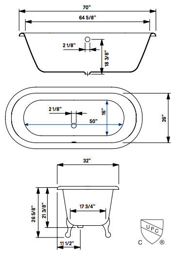 Cheviot Products Regal Cast Iron Bathtub With Continuous Rolled Rim