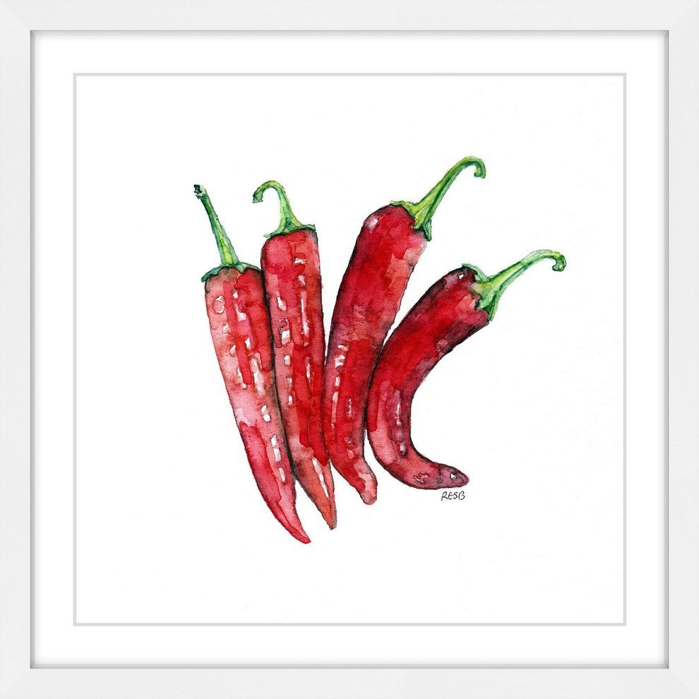 "Cheyenne Peppers" Framed Print by Rachel Byler features vivid tones and supple artistry. Mounted in a gorgeous frame, this 24 inch wide by 24 inch tall piece will be an exceptional addition to any room. Top quality Giclee print on high resolution Archive Paper Artwork by Rachel Byler Professionally framed and mounted on acid free archive matte High quality durable non-warping frame Arrives ready to hang Includes a certificate of authenticity Made in the USA Artist signature on the front
