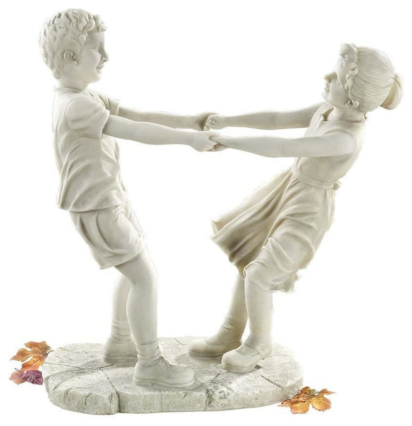 Remember going in circles until you seemed to spin as quickly as the earth itself? Full of the carefree joys of childhood, our young boy and girl dance in glee. Finely sculpted with the tousled hair and bare arms that echo the freedom of a summer day, our playing children statue is a nostalgic look back in time. Whether you opt for the grand, yard-tall version or our more scaled pair, these statues are both artfully cast in quality designer resin with an antique stone finish. Large: 15.5"W x 9"D x 18"H. 10 lbs.