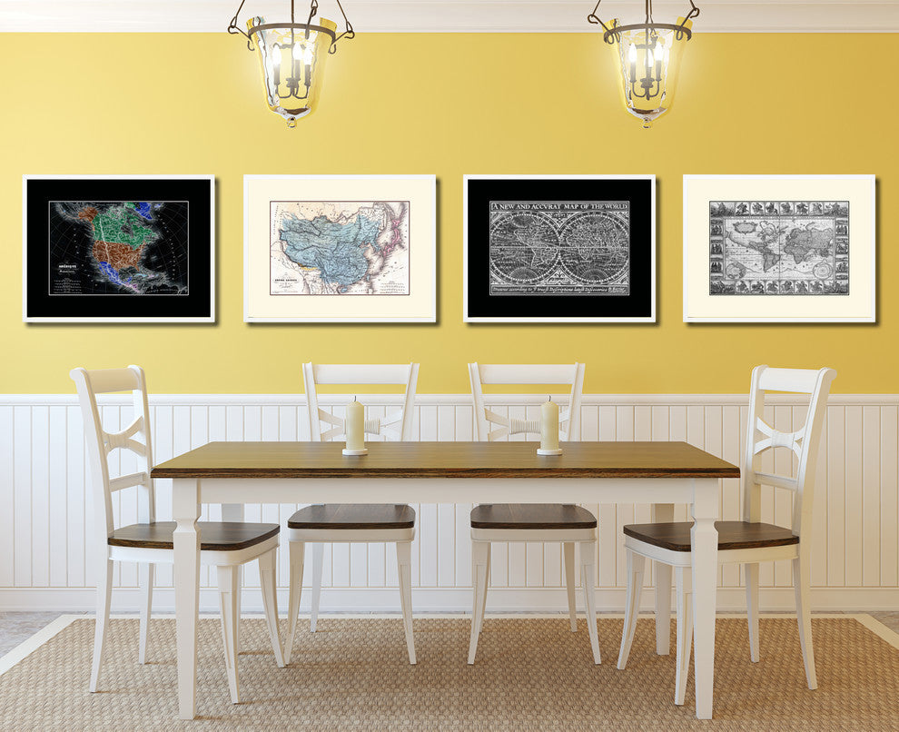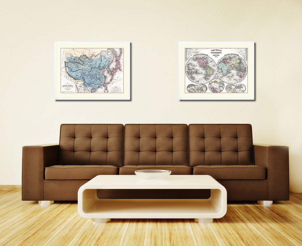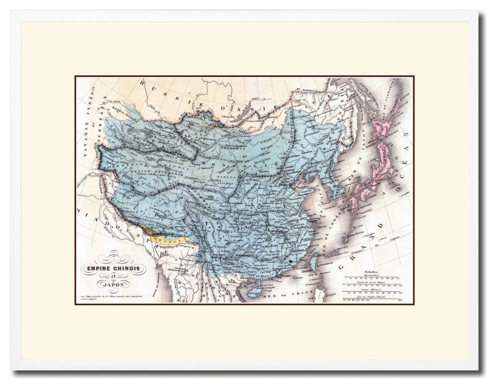 China, Japan, Korea Old Map Print On Canvas With Frame Art Collection 16" X 21"