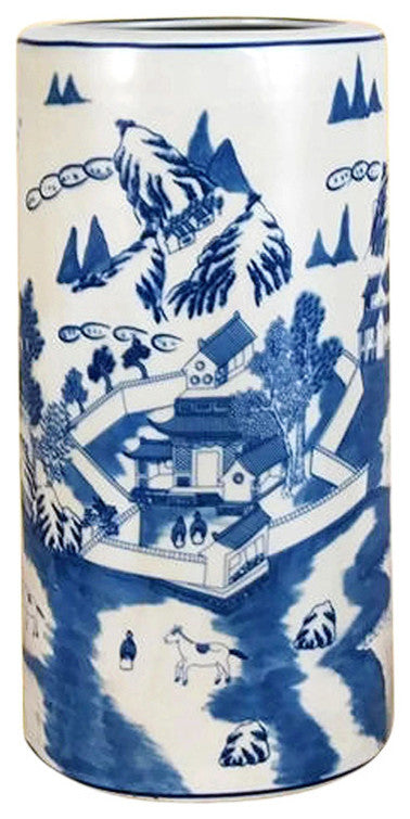 Chinese Blue and White Blue Willow Porcelain Umbrella Stand 18"