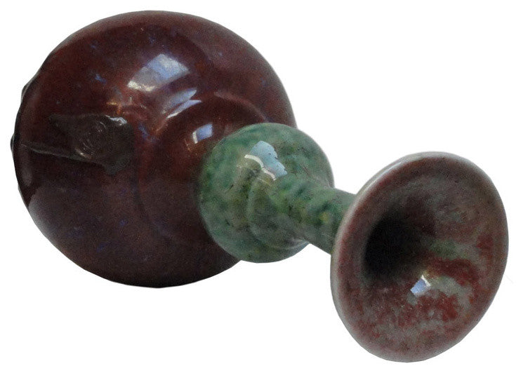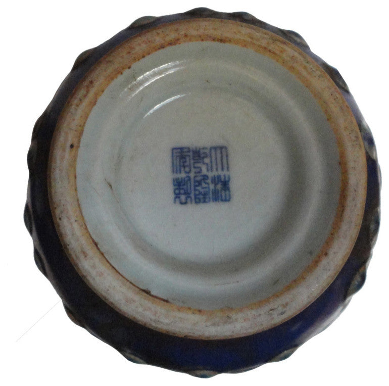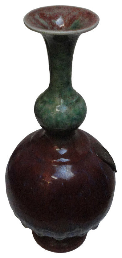 This is a very beautiful porcelain vase that is painted in multi-color. The design of neck and body is very exquisite. It has Chinese seal at the bottom. That would be a very nice display vase.Dimensions: Dia 5" x 11.4"hOrigin: China material: Porcelain