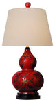 Chinese Red Lacquer Porcelain Gourd Vase Table Lamp Shade and Finial 24"