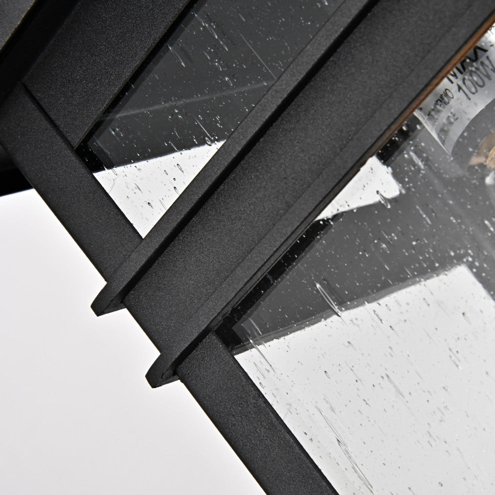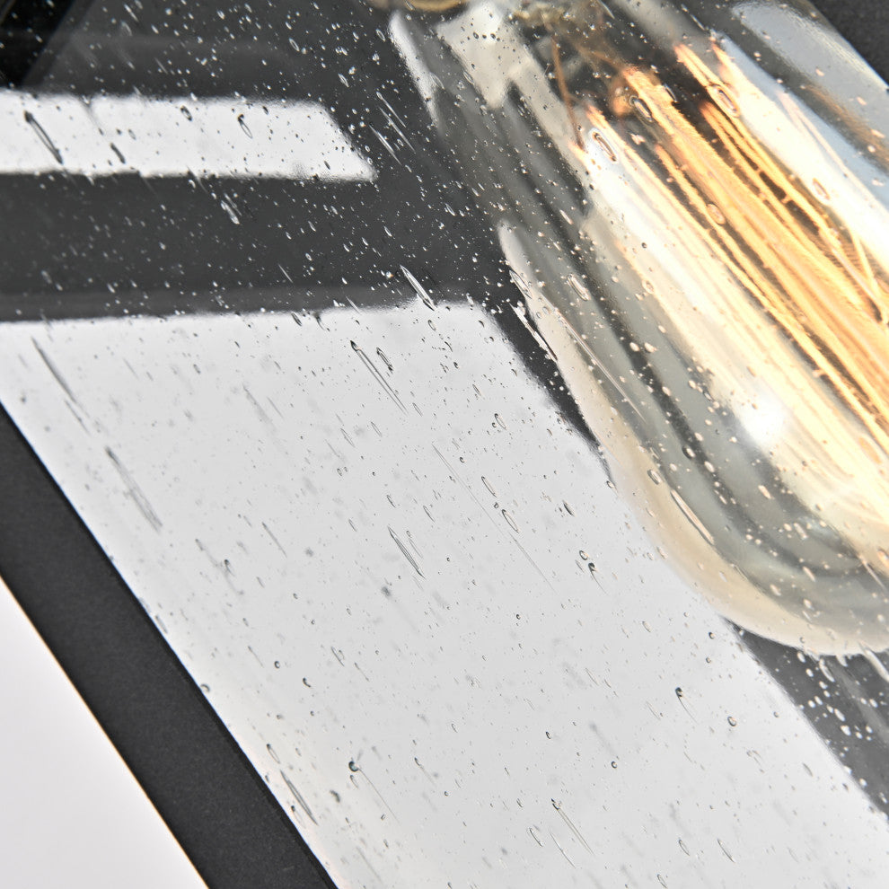 Modernize your home with this lovely, textured black out door walls sconce! This fixture is recantangular in shape, and surrounds seedy glass inserts. It also has an open base, making light bulbs changed very easy. The fixture takes one 100W bulb and is compatible with flourescent, incandescent and LED bulbs. All of our wall sconces are UL listed, and dry, damp and wet listed, to survive all weather conditions, hot and cold.