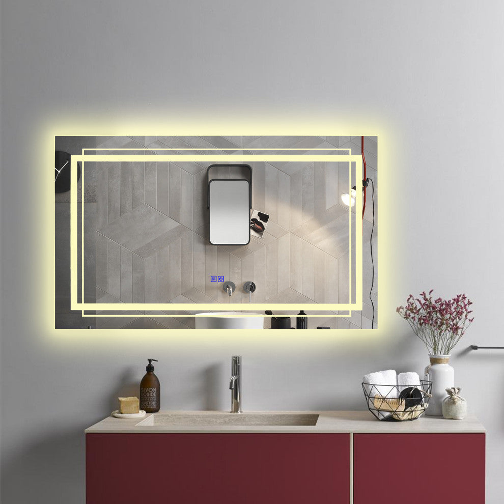 Back Lit LED Mirror 3000K-6000K Warm White+Day Light+Cool White - 3700 Lumens (Frameless)