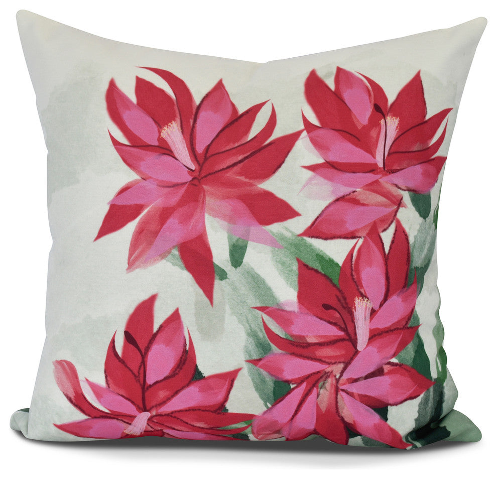 Christmas Cactus, Floral Print Outdoor Pillow, Pink, 20" x 20"