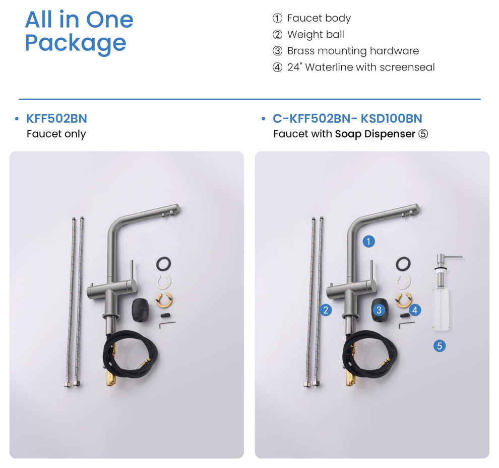 Easy Installation: Designed for hassle-free installation, this 2-in-1 kitchen pull-out faucet with filter outlet fits most standard kitchen sinks. The included installation manual and accessories simplify the setup process, allowing you to enjoy the benefits of filtered water in no time.