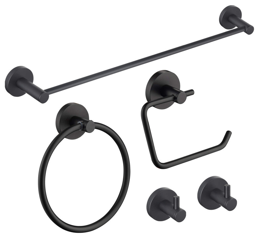 Circular 5-Piece Bathroom Hardware Set, Matte Black