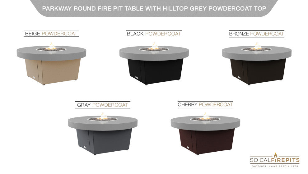 The Parkway Circular Fire Pit Table is a midsize table, perfect for entertaining or for a quiet escape in your own backyard. We offer this table in a wide variety of granite or aluminum tops and a wonderful palette of base colors. This table won''t crowd a compact urban space yet is large enough to gather a large circle of friends.