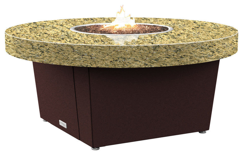 Circular Fire Pit Table, 48", Propane, Santa Cecillia Granite Top, Dark Cherry