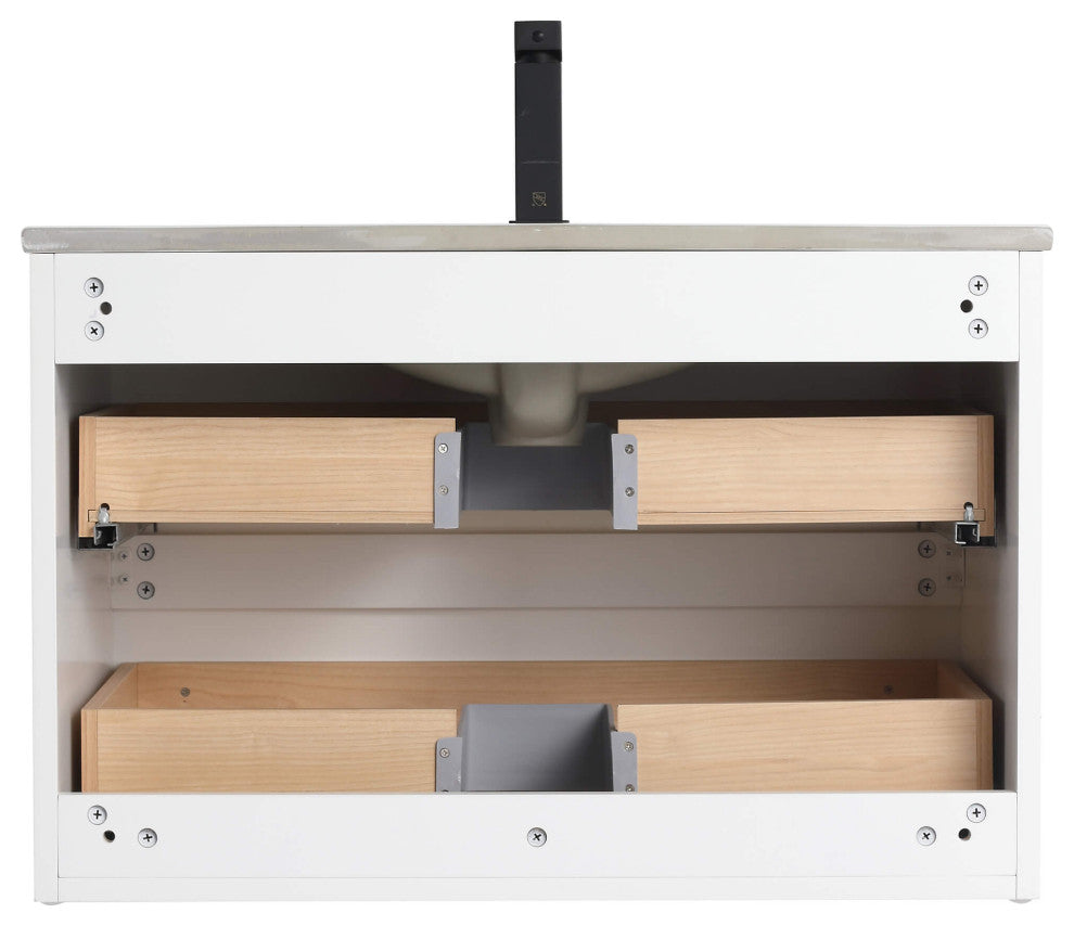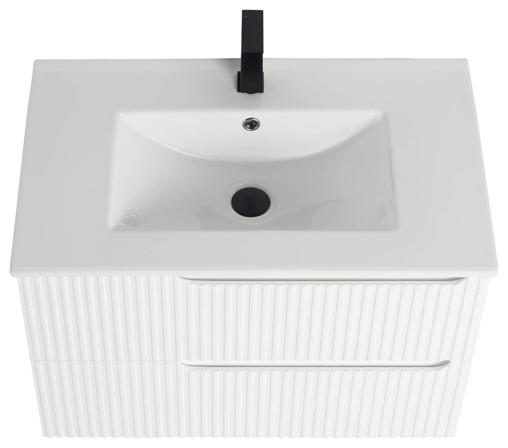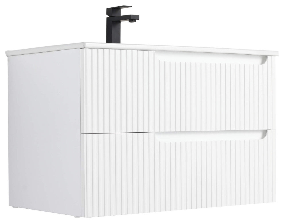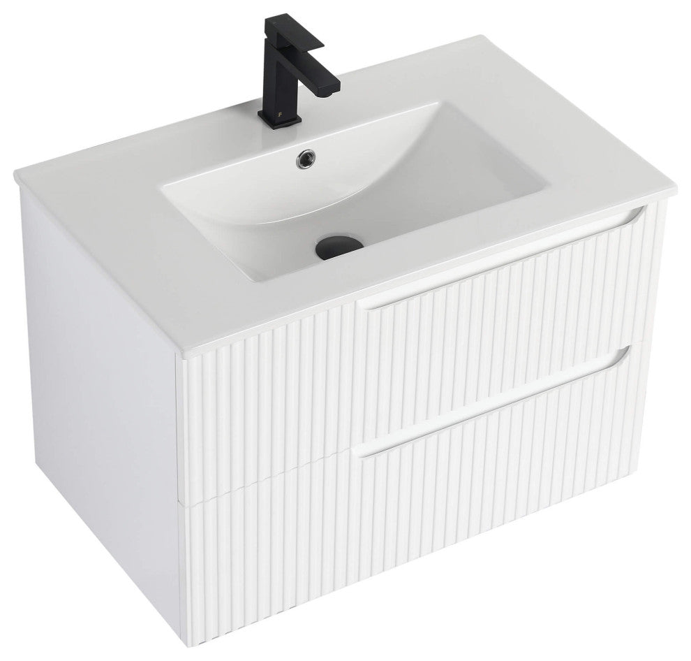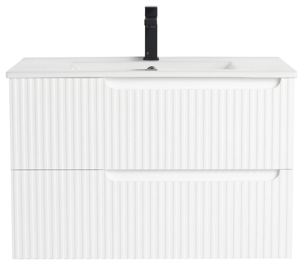 Citiscape Bath Vanity, Textured Drawer Fronts Sink Included, White, 30"