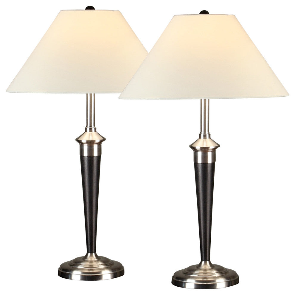 Bring some class to your home or office decor with these contemporary lamps. Finished with brushed steel and espresso, these lamps have a white shade giving them an elegant look.