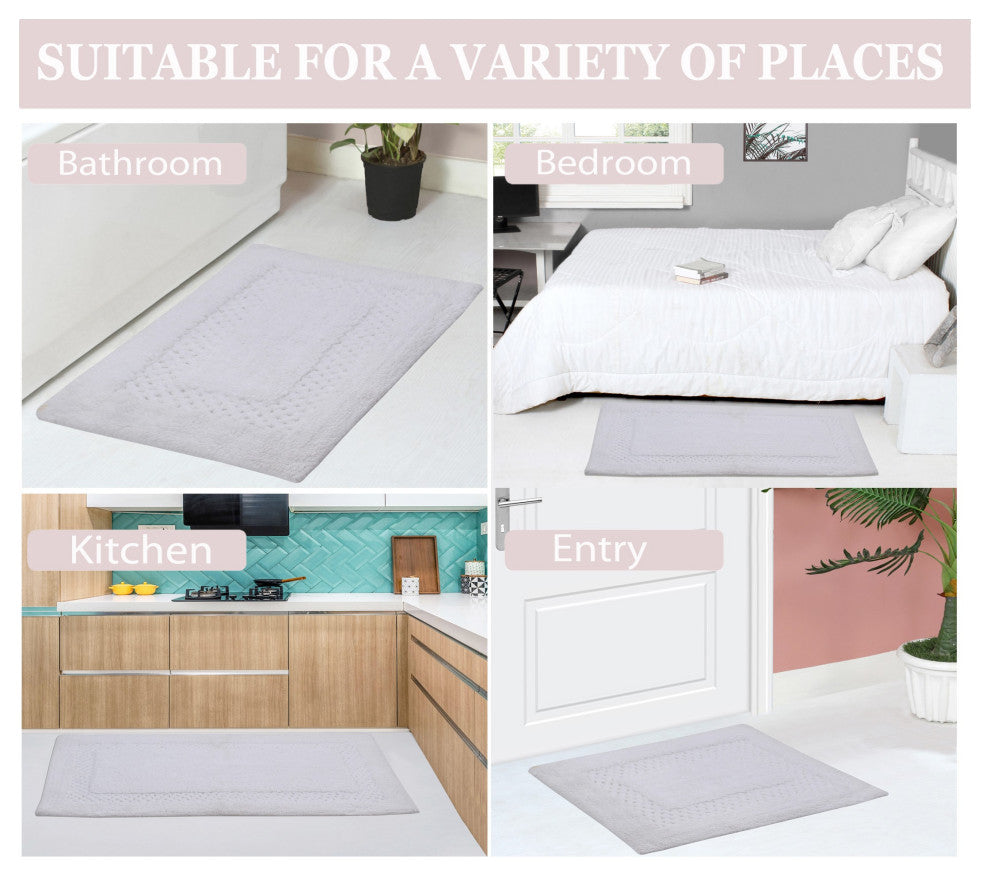 Classy Bath Rugs Set, 17"x24" Rectangle, White