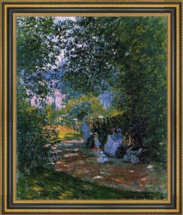 16" x 20" Claude Oscar Monet At the Parc Monceau framed premium canvas print reproduced to meet museum quality standards. Our Museum quality canvas prints are produced using high-precision print technology for a more accurate reproduction printed on high quality canvas with fade-resistant, archival inks. Our progressive business model allows us to offer works of art to you at the best wholesale pricing, significantly less than art gallery prices, affordable to all. This artwork is hand stretched onto wooden stretcher bars, then mounted into our 3 3/4" wide gold finish frame with black panel by one of our expert framers. Our framed canvas print comes with hardware, ready to hang on your wall. We present a comprehensive collection of exceptional canvas art reproductions by Claude Oscar Monet.