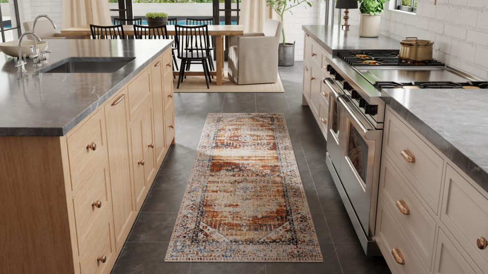 Claymore R39NZ Transitional/Bohemian & Vintage Runner, Ivory/Rust, 2'6"x7'3"