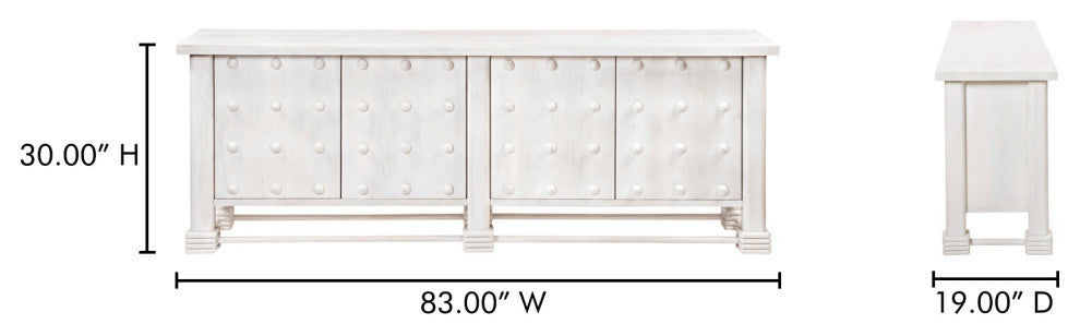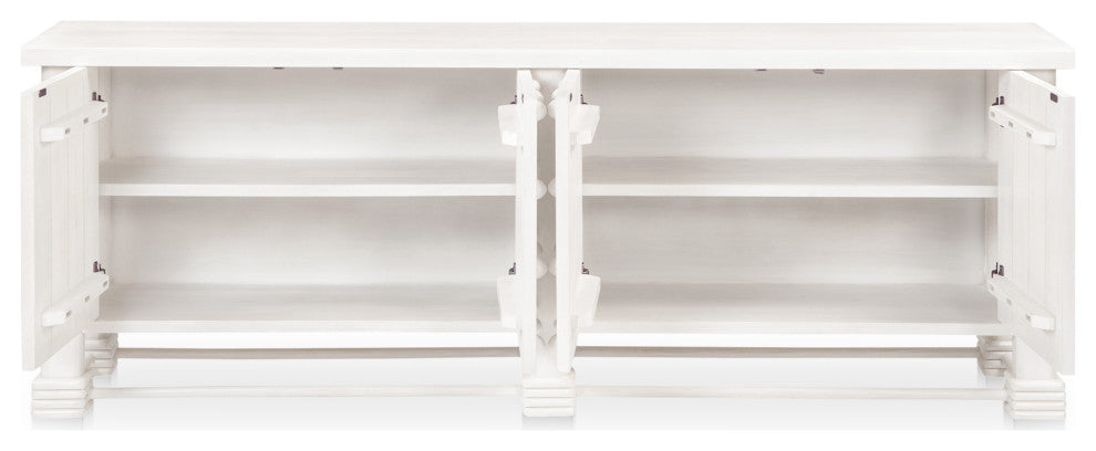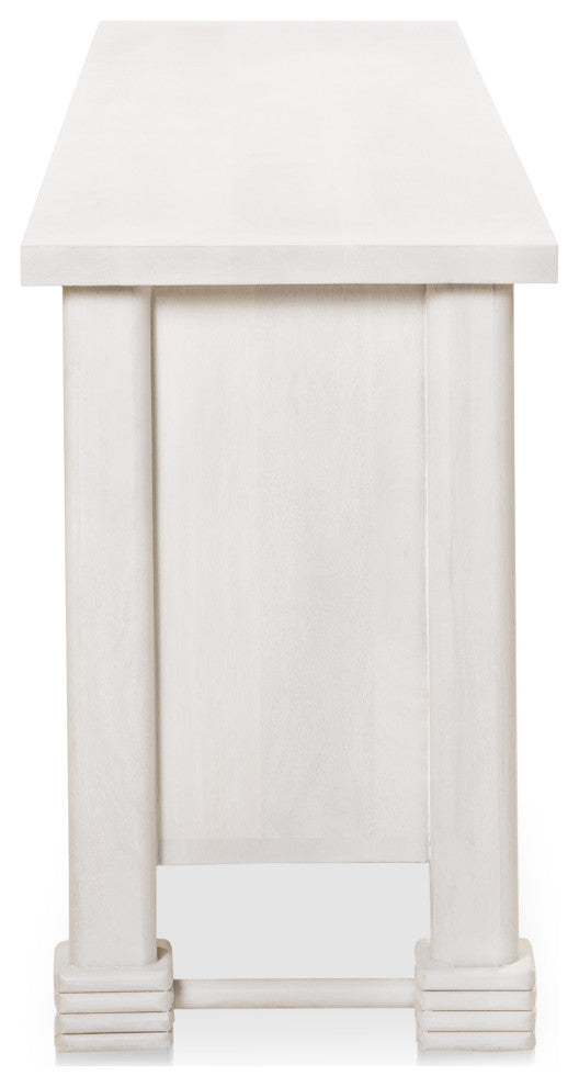 French-inspired elements and circular motifs enrich the Clement sideboard''s oversized, chunky design. Crafted from mango wood with a whitewash finish, this ornate piece features carved detail feet with stretcher bars and ample internal storage.