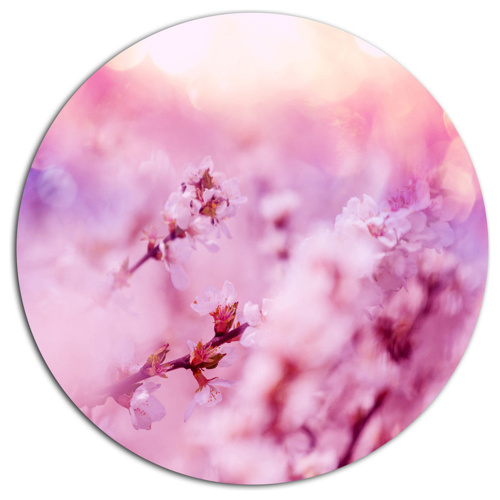 Bring Contemporary Abstraction to your home with this large Circle Metal wall art. This Close-Up View of Blossoming Cherry Metal Artwork makes it the focal point of any room or office.