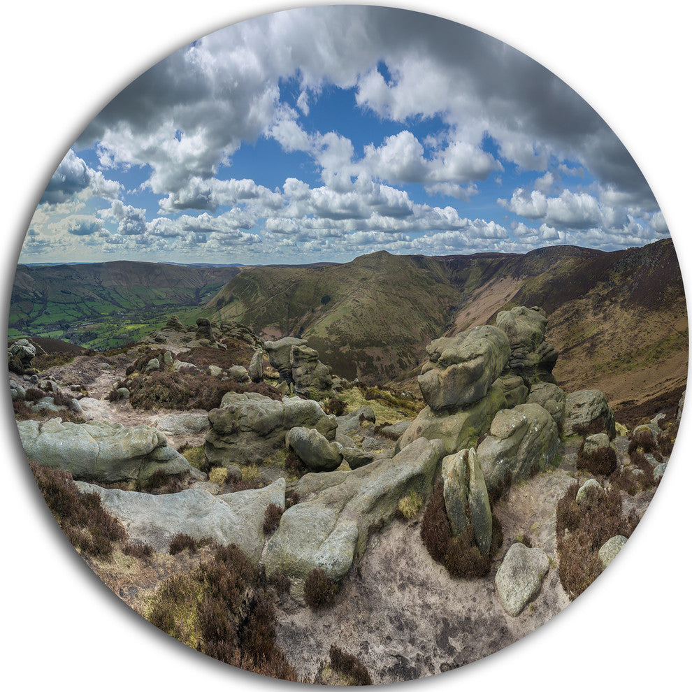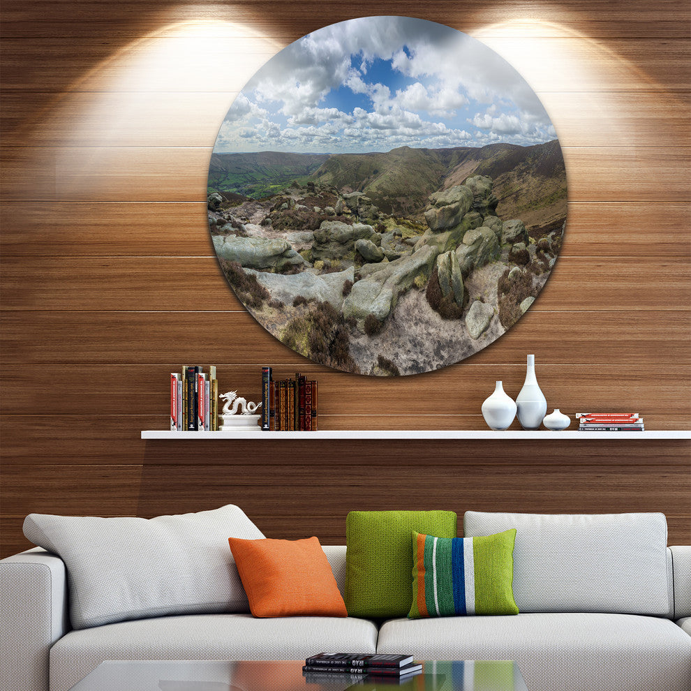 Clouds And Stones Under Wild Clouds, Landscape Round Metal Artwork, 23"