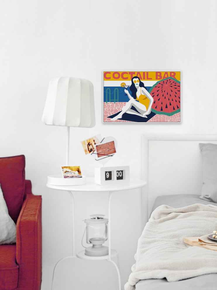 "Cocktail Bar" Floater Framed Painting Print on Canvas, 18"x12"