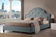 -Scalloped headboard with silver nailhead trim
