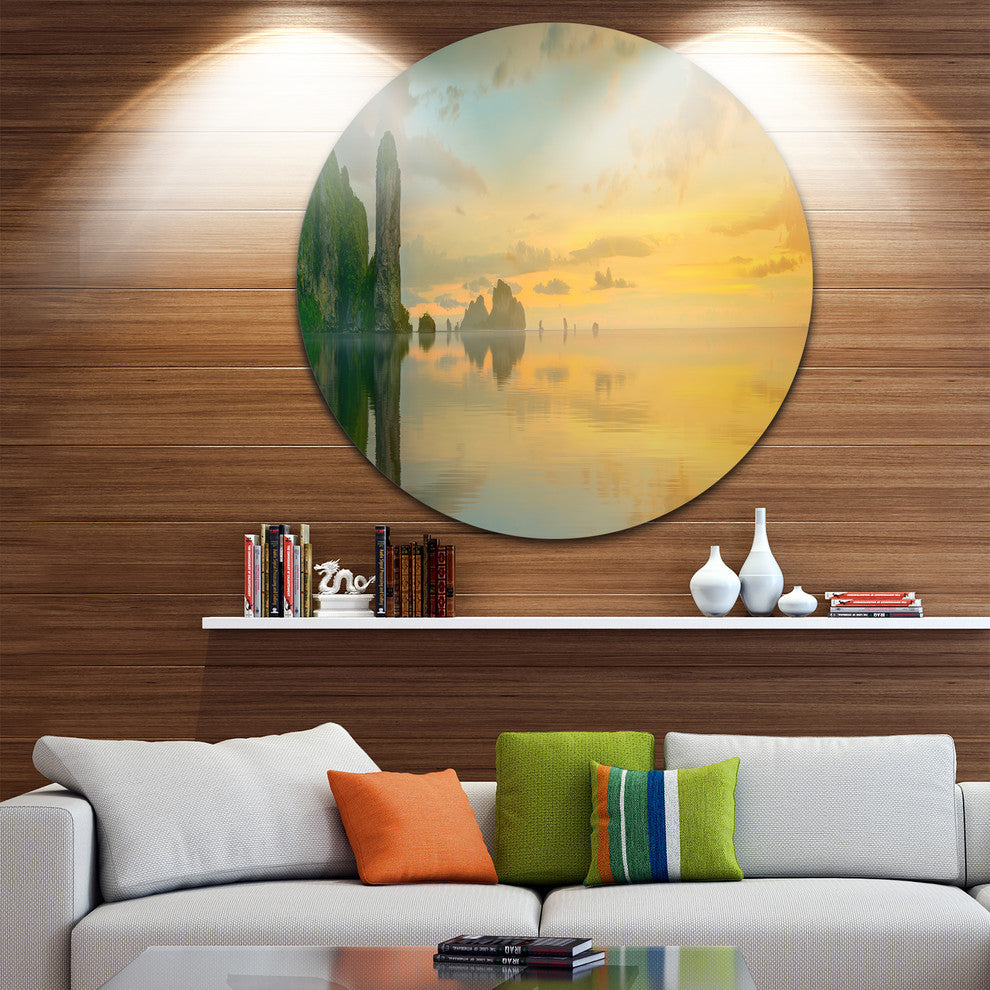 Bring Contemporary Abstraction to your home with this large Circle Metal wall art. This Colorful Sky and Board on Beach Metal Artwork makes it the focal point of any room or office.