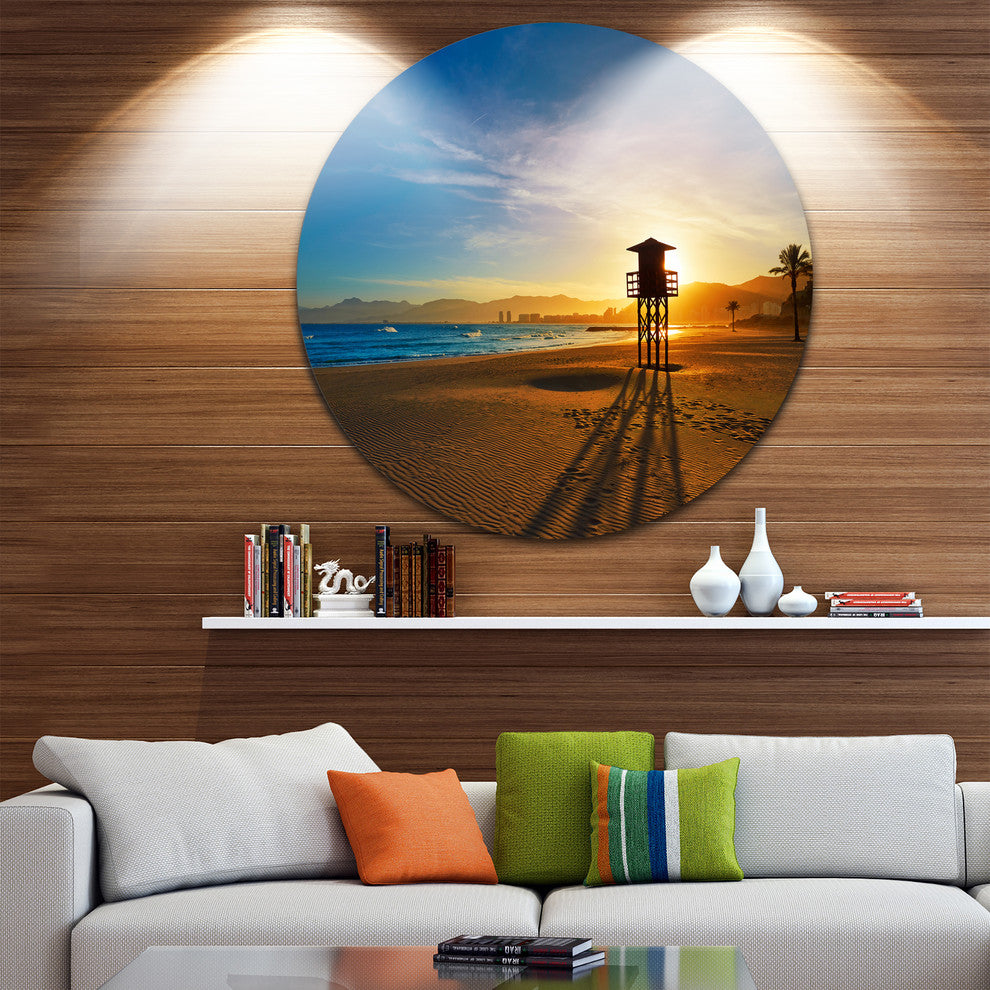 Colorful Sunset In Valencia, Modern Beach Round Wall Art, 36"