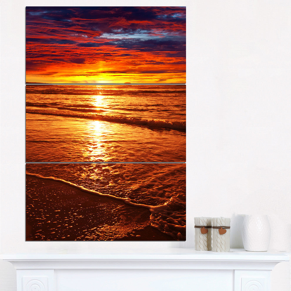 "Colorful Sunset Mirrored in Waters" Beach Metal Wall Art, 3 Panels, 28"x36"